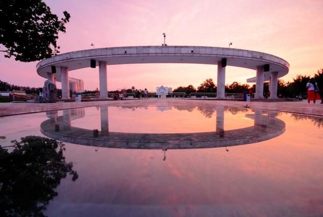 廊坊時(shí)代廣場(chǎng)共分二期工程建設(shè)。一期工程分為東區(qū)工程和中區(qū)工程, 占地220畝,東區(qū)工程主要包括硬質(zhì)鋪裝及停車場(chǎng)、塑膠體育場(chǎng)、下沉式劇場(chǎng)、水幕電影,中區(qū)工程借助原人民公園的自然湖面和綠島;二期工程為西區(qū)工程,占地160畝,主要有博物館、老年活動(dòng)中心、少年科技活動(dòng)中心、老火車站遺址等。版權(quán)所有山東聊城聊之旅國際旅行社有限公司,轉(zhuǎn)載必究!現(xiàn)一期工程已于2001年5月16日竣工并向市民開放。廣場(chǎng)占地7萬平方米,是我省最大的集休閑、娛樂、健身等功能于一體的綜合性廣場(chǎng)。主要設(shè)施包括:雕塑水池、下沉式劇場(chǎng)、水幕電影、塑膠體育場(chǎng)。廣場(chǎng)中心雕塑高17為,四周矩陣式跑泉與下沉式劇場(chǎng)主噴泉隨音樂節(jié)拍起伏跌蕩,顯示出剛?cè)嵯酀?jì)的效果;下沉式劇場(chǎng)背湖而立,可容納2000人觀看演出;水幕電影以水幕取代了傳統(tǒng)布幕,投影系統(tǒng)采用比利時(shí)BACO高亮度投影儀,可將VCD、電視節(jié)目以及計(jì)算機(jī)所形成的各種圖景放映在水幕屏上,廊坊市是河北省第一個(gè)具備該種設(shè)施的城市;環(huán)型塑膠體育場(chǎng)位于廣場(chǎng)南側(cè),占地3000平方米。