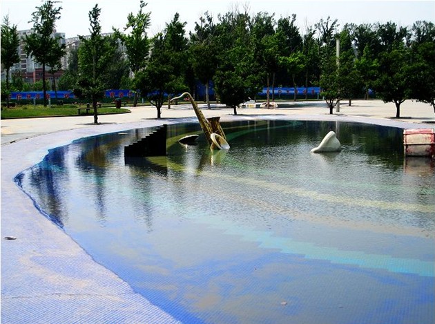 縱搖擺共設(shè)計(jì)4組,噴高為6-8米,分別布置在水池120米為邊的正方形上。噴水就像翩翩起舞的少女,忽兒獨(dú)舞,忽兒對(duì)舞,組成一排舞動(dòng)的水幕。寓意廊坊一片生機(jī)勃勃的景象。