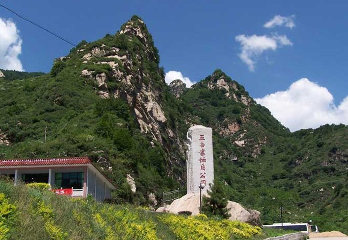 本區(qū)在地質(zhì)構(gòu)造上屬于華北古陸太行山中段東麓,區(qū)內(nèi)廣泛出露中、下元古界變質(zhì)巖系,其巖性主要為片麻巖、變粒巖、角閃片巖、斑狀花崗巖等。由于新生代喜馬拉雅運(yùn)動(dòng)的強(qiáng)烈抬升和差異斷塊活動(dòng)。造成了平的華北平原(海拔幾十米)與高聳的太行山的強(qiáng)烈對(duì)比,形成了一系列相對(duì)高差較大的陡峭山峰,本公園就處在由古老變質(zhì)巖基礎(chǔ)上發(fā)育起來的斷塊中山地區(qū),海拔1000-2150米,由于斷塊構(gòu)造形成了景區(qū)內(nèi)山地溝深坡陡、山勢(shì)雄奇險(xiǎn)秀,峽谷多而幽險(xiǎn)。五岳寨主峰呈五峰獨(dú)立之勢(shì),如一組巨大的盆景被太行山當(dāng)胸托起。主峰1946.5米,最低峰亦1880米以上。山勢(shì)陡峻、雄險(xiǎn),東南側(cè)陡崖壁立,直垂谷地深達(dá)數(shù)百米。僅十幾平方米的頂峰巖石平臺(tái),三面臨萬丈絕壁、奇險(xiǎn)無比。站在峰頂極目四望,蒼茫中天地一色,千山萬嶺盡收眼底,讓人真正體會(huì)到“會(huì)當(dāng)凌絕頂,一覽眾山小”的境界。五岳寨地質(zhì)資源豐富,山形地貌奇特,猴頭峰、石駝峰、鴛鴦石、將軍石等許多山峰奇形怪狀,擬人似獸、栩栩如生。