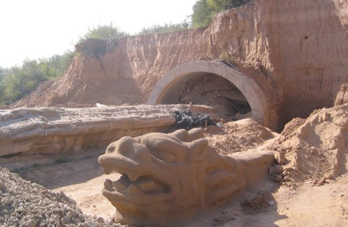 其次,出土古石龍的山坡古時(shí)候就叫臥龍坡。而且周邊還有許多以龍命名的建筑。此外,當(dāng)?shù)孛耖g自古都流傳著許多關(guān)于龍的故事。古石龍都朝向東北方向,而在古石龍東北方向1.5公里遠(yuǎn)的地方就是著名的趙王陵遺址。趙王陵是我國戰(zhàn)國時(shí)期七雄之一趙國的帝王陵寢,石龍極可能為趙王陵的“鎮(zhèn)陵之物”。