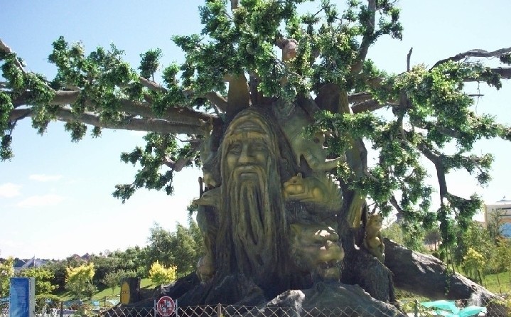 神秘古樹象征著人與自然和諧共處的神秘古樹,其實蘊藏著一段感人的傳說…… 久遠前,這里曾是一片山谷與密林,所有的動物都和諧地生活著。但這里每隔一定的年頭就會發生自然災難,山上的石頭會迸裂開來,洪水噴涌而過,幾乎吞走所有動物。年長的動物為了躲避災難保護子孫,尋找到一棵幾千年依舊挺拔茂盛、不畏災難的古樹。當災難爆發時,動物們都環抱著古樹,期望依靠古樹的力量抵御洪水的沖擊。年長的動物們卻用自己的血肉之軀緊緊的包圍著古樹與子孫,寧可粉身碎骨也抵抗著迸裂的山石。山洪愈加洶涌,為了組成這個嚴實的“保護墻”,無數的動物長輩獻出了生命,更有無數的年長動物補充上去。