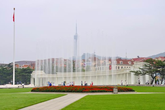 總面積12.5萬平方米,其中草坪面積4萬平方米。北面坐落的是大連人民政府,東西分別是公安局、法院、檢察院,廣場南部是一座升旗臺和大型音樂噴泉。改建后的人民廣場,最突出的特色是變原來以草坪為主的靜態廣場為以水景為主的動靜相結合的廣場,從而使這里更增添了許多歡樂氣氛。