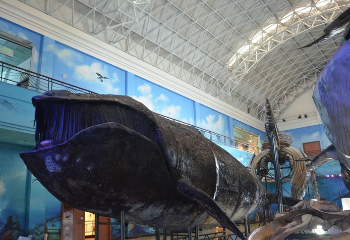 巨鯨展廳的展示主題是“海洋巨獸”。巨鯨是地球上現(xiàn)生的最大動(dòng)物。幾個(gè)世紀(jì)以來,由于世界各地沿海國家的大規(guī)模捕殺活動(dòng),使巨鯨的資源遭到了嚴(yán)重破壞,其種群數(shù)量正在銳減,有的鯨類數(shù)量已到了難以恢復(fù)的境地,甚至面臨滅絕的危險(xiǎn)。體型碩大的巨鯨令人驚奇且著迷,人們一生中很難有機(jī)會(huì)親眼見到這些龐然大物。本展廳展示了我館收藏的部分巨鯨外形和骨骼標(biāo)本,有重達(dá)66.7噸的黑露脊鯨、52噸重的抹香鯨和34.7噸重的長須鯨等,這些館藏標(biāo)本在世界各地的其他博物館都難得一見。