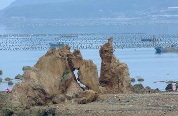 第二天,在大將軍倒下的地方,海水像開了鍋,呼嘯翻騰,忽然立起一塊巨石,人們一看很像大將軍的樣子。他的女兒見了,飛快地?fù)溥^去,還沒靠近就僵住了,也化成一塊巨石。人們稱那塊像大將軍的巨石為“將軍石”。父女倆屹立在廣鹿島的岸邊,日夜守衛(wèi)著寶島。