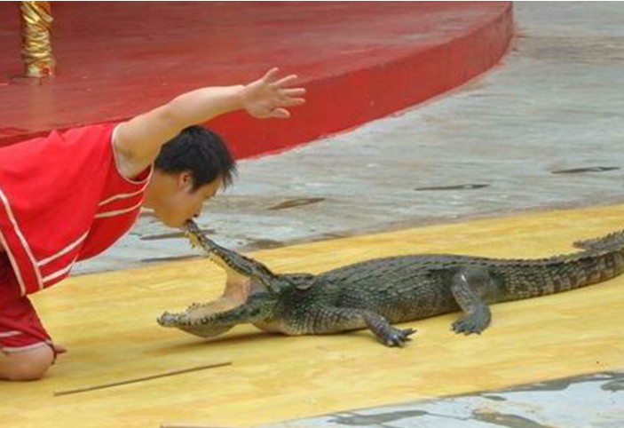 洋信鱷魚園是全世界種類最齊全、節(jié)目最豐富的鱷魚中心,園內(nèi)建設(shè)呈現(xiàn)原始質(zhì)樸風(fēng)格,彌漫著熱帶雨林神秘浪漫氣息,是休閑度假、旅游觀光的上佳去處。 娛樂(lè)項(xiàng)目有露天觀鱷嬉戲園,可垂釣幼鱷、投喂成鱷、玩笑大鱷;有泰國(guó)人鱷魚表演場(chǎng),具逗樂(lè)接吻、騎背抱舉、鱷口求生驚險(xiǎn)節(jié)目;有鱷魚海鮮美食樓,版權(quán)所有山東聊城聊之旅國(guó)際旅行社有限公司,轉(zhuǎn)載必究!香港名廚主理,進(jìn)口鮮美鱷肉,配輔海鮮美食,可一飽口福;還有鱷魚溫控觀賞室,四季如春,鱷魚密集,冬季觀鱷,別有風(fēng)味。