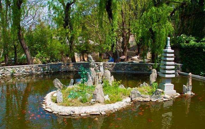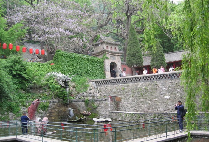 位于大黑山西北麓,是大連地區著名的道教廟宇,又稱響水寺、韻水寺。相傳建于唐代,后世特別是清代曾多次重修。響水觀依山而建,為歇山或二層磚砌飛檐結構,山門配以赭紅色垣墻,再加上門外一道坡度較大的臺階,使廟宇顯得巍峨莊嚴。 響水觀分南北兩院,進山門即是正殿后土殿。這是一座近十米高的硬山式三楹出廈殿堂,青磚灰瓦,雕梁畫棟,富麗堂皇。殿內供奉著后土、女蝸、觀音等神圣。殿前院內有池塘和五棵合抱粗的大樹,清水綠蔭,滿院生涼。北院有精舍數椽,紅色木柱木棱花窗,幽靜古樸,是道士們的住處和客舍。 響水觀正殿右側有一個40米深的天然洞穴,叫做瑤琴洞,洞內有清泉一泓流出,潺潺作響。泉水流出后,自南而北從嵌在寺外壁上的龍口中瀉下,版權所有山東聊城聊之旅國際旅行社有限公司,轉載必究!激至蹲伏于水塘中的碧蟾口中,嘩嘩作響,飛傳山谷,故名“響水觀”。