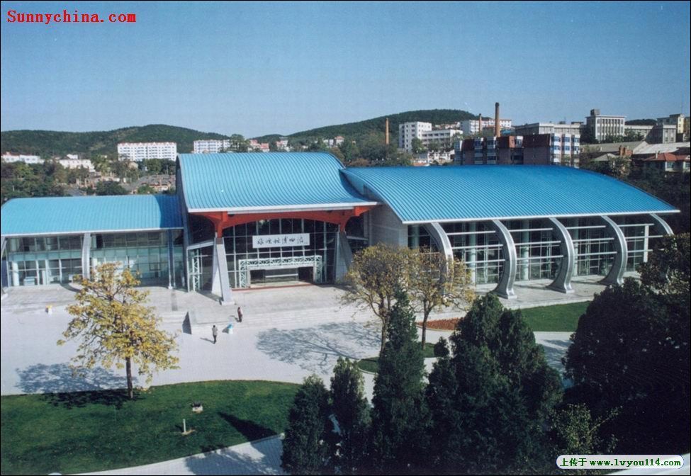 坐落在風景秀麗的旅順太陽溝景區的博物苑內。占地面積14000平方米,建筑面積5000平方米,總投資2300萬元。整體建筑為流線型鋼混框架結構,建筑形體以實墻與大玻璃幕墻圍合而成,屋頂最大高度17.2米,最大跨度為46.5米,該館是大連市重點旅游工程項目之一。