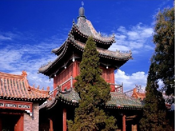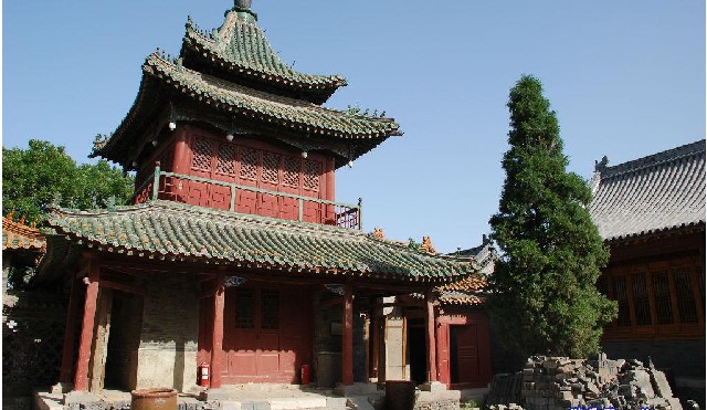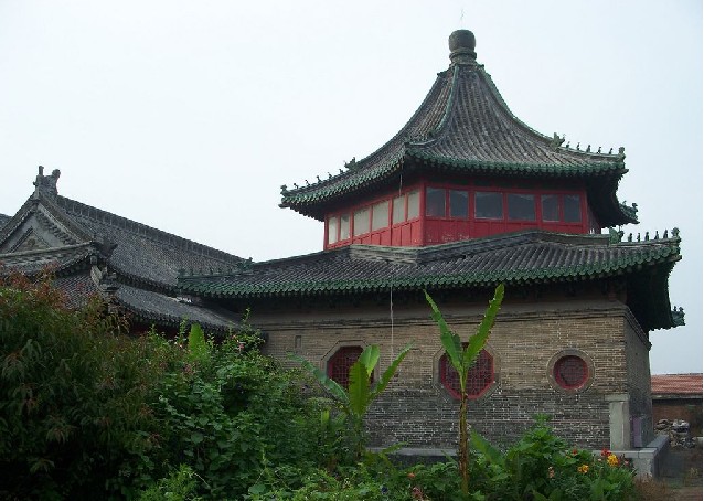 中殿由望月樓、南北便門、南北配殿、東耳房組成。版權所有山東聊城聊之旅國際旅行社有限公司,轉載必究!望月樓為中院起點,下層為閣,磚砌石墻,飾圓窗,四周以12根方柱筑成圍廊,上起四面飛檐,廊柱間加棱形花欄桿;上層為廳,全木結構,外有窄廊,可過人,四周圍卐形花欄桿,頂部有木質浮雕腰板,垂花柱。此樓二層三蒙,重檐轎子頂(上層為重檐,下層為單檐),綠琉璃瓦罩頂。三層飛檐的飾物均為綠琉璃瓦制。