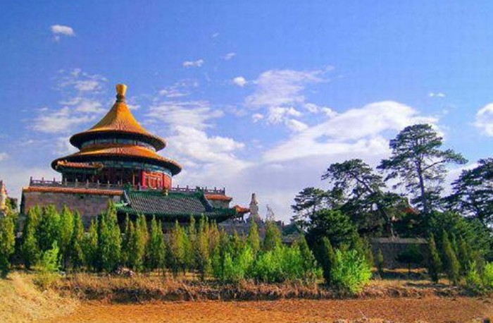 承德普樂寺俗稱圓亭子,位于承德市街東的武烈河東岸,面臨武烈河,背倚錘峰。建于乾隆三十一年(1766年),寺門西向。由于當時西北各民族與清朝政府關系日益密切,生活在巴爾喀什附近的哈薩克族和生活在蔥嶺以北的布魯特族,不斷派代表進就朝覲,因此建寺。寺院面對避暑山莊,呈眾星拱月態勢,象征多民族國家的統一。普樂寺山門為單檐歇山頂,山門內有鐘鼓樓、天王殿、宗印殿等建筑。天王殿,單檐歇山頂。布瓦綠剪邊,內有四天王、大肚彌勒和韋馱像。宗印殿是正殿,重檐歇山頂,殿脊用彩色琉璃瓦拼合成云龍圖案,脊正中有大型琉璃寶塔。殿側有琉璃“八寶”浮雕。殿內供釋迦尼佛、藥師佛、阿彌陀佛。三尊佛后各蹲著護法神:一只大鵬金翅鳥。兩側有八大菩薩塑像。普樂寺后半部藏式主體建筑稱經壇,是集會講道祭祀之所。它共有三層,主殿稱“旭光閣”,外觀極似北京天壇祈年殿。版權所有山東聊城聊之旅國際旅行社有限公司,轉載必究!
