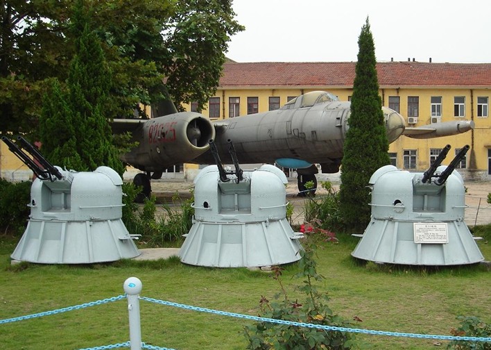 武器裝備展區建在院內廣場上。廣場整齊陳列著各種退役的武器裝備,按照武器類型分艦艇、導彈、飛機、雷達、火炮5個展群和一個特殊展區。導彈展群內擺放著各種功能的導彈,小如炮彈,大如飛機,其中一種紅旗地對空導彈在60年代曾3次擊落美制U一2無人駕駛高空偵察機。艦艇展群中有一艘周恩來總理于1957年8月4日在膠州灣檢閱駐青島海軍部隊時乘坐的02型木殼魚雷快艇。特殊展區內陳列著一架肖勁光司令員乘坐的伊爾一14飛機,此機于1960年至1991年服役期間,曾多次接送過首長和國際友人,并參加過多次搶險救災任務。