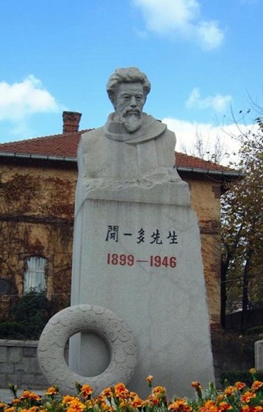 解放后,聞一多先生的故居劃在原青島大學(現青島海洋大學)校園內,并命名為“一多樓”。1978年,海洋大學將“一多樓”辟為“聞一多故居展室”,展室陳列有聞一多先生的著作及其它一些紀念物。展室匾額“一多樓”,由中國書法協會主席舒同題寫。小樓前建有一花壇,花壇正中豎立有聞一多先生半身大理石塑像,座上刻有聞一多先生的學生、著名詩人臧克家撰寫的碑文。
