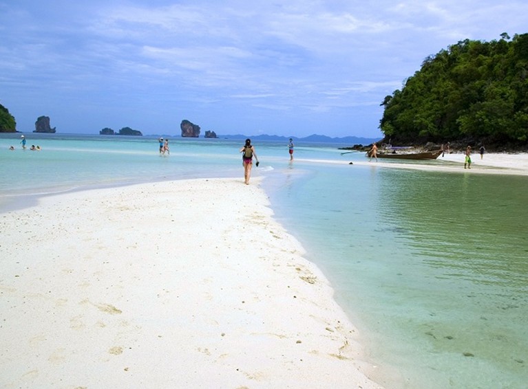 泰國南部的甲米是一個有如天堂的熱帶半島,周圍零星散落著30多個離島,如珍珠般點綴著這片海域。潔白柔軟的細沙,溫暖清澈的海水,棕櫚樹隨風搖曳,瀑布潺流不絕,野生動物隨處穿梭,這里到處詩情畫意,美不勝收。喜歡攀巖的更可以在這里一展身手。甲米擁有許多風光旖旎的島嶼和濃厚的本土文化,它豐富的植被和動物種群也聞名遐邇。