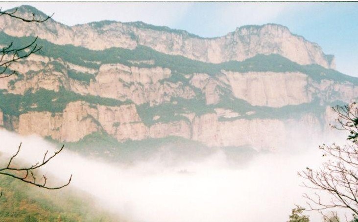 如果誰要是不知“層巒疊嶂”這個詞的確切含義,就到嶂石巖去讀吧。它的山巒成三疊,每一疊都如紅色屏 嶂石巖風(fēng),高一二百丈,廣數(shù)里,石壁光滑如磨,纖草不生,飛鳥難落,猿猴難攀。每兩疊間錯落成平臺,樹茂草豐,呈綠色環(huán)帶。