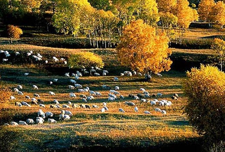 森林公園北、西部被廣褻的草原所環抱。綠茵如氈,坦蕩無際,風吹草低)牛羊成群。極盯遠眺,藍天、白云與草原、羊群相融相連。間或傳來駿馬的嘶鳴和牧羊人的音哨,令人心曠神怡,浮想聯翩。