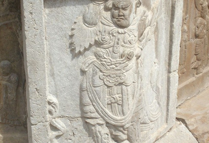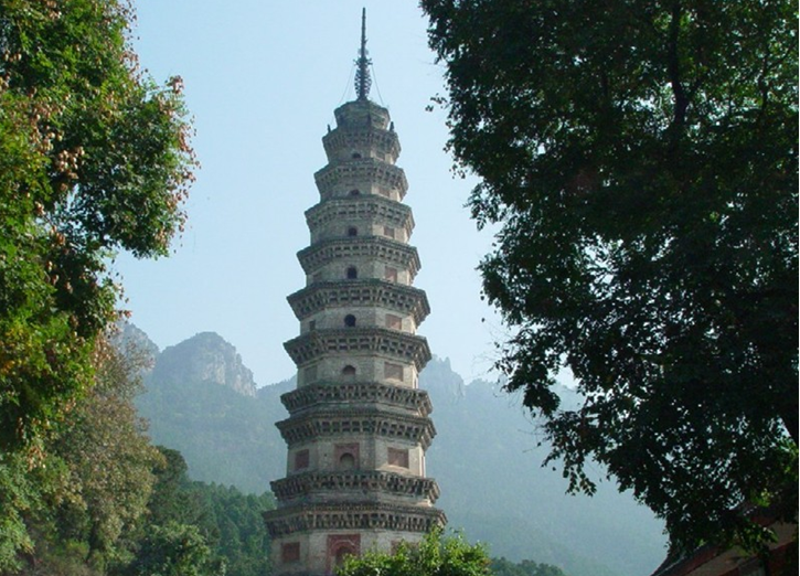 “辟支”出于佛教,音譯為“辟支迦佛陀”,略稱“辟支佛”,辟支塔,意即辟支佛塔。辟支塔為一座八角九層樓閣式磚塔,塔高55.7米,塔基為石筑八角,上有浮雕,鐫刻有古印度孔雀王朝阿育王皈依佛門等故事。塔身為青磚砌就,各層皆施腰檐,下三層為雙檐,二至四層檐下置平座。塔檐與塔徑自下而上逐層遞減,收分得體。塔內(nèi)一至四層設塔心柱,內(nèi)辟券洞,砌有臺階,可拾級而上,自第五層以上砌為實體,登塔須沿塔壁外腰檐左轉(zhuǎn)90度進入上層門洞。塔身上置鐵質(zhì)塔剎,由覆缽露盤、相輪、寶蓋、圓光、仰月、寶珠組成,自寶蓋下垂八根鐵鏈,由第九層塔檐角上的八尊鐵質(zhì)金剛承接,在塔內(nèi)延續(xù)到地下,起避雷作用。辟支塔氣勢雄偉、造型美觀、結(jié)構(gòu)復雜、比例適當,呈典型的宋代風格,為靈巖寺標志性建筑。宋代文學家曾鞏有詩贊曰“法定禪房臨峭谷,辟支靈塔冠層巒”。