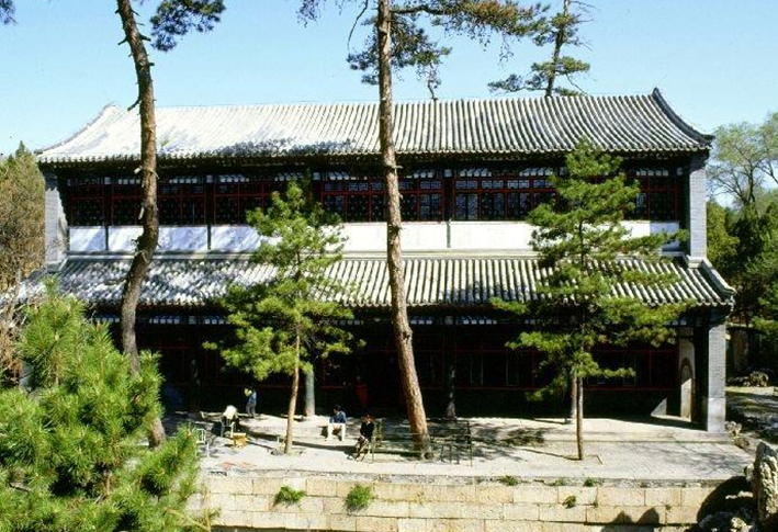文津閣位于熱河行宮(今河北省承德市)避暑山莊平原區的西部,建于乾隆三十九年(1774年),是仿浙江寧波天一閣建造的。它不僅是清代的重要藏書之所,也是一處很有特色的小園林。這里曾藏《四庫全書》,以及經、史、子、集分類,共收書3503種,79337卷,363萬冊,是一份極有價值的文化遺產。弘歷(乾隆皇帝)在《文津閣記》中寫道:“欲從支脈尋流,以溯其源,必先在乎知其津。”此句即含有“文津”之意。