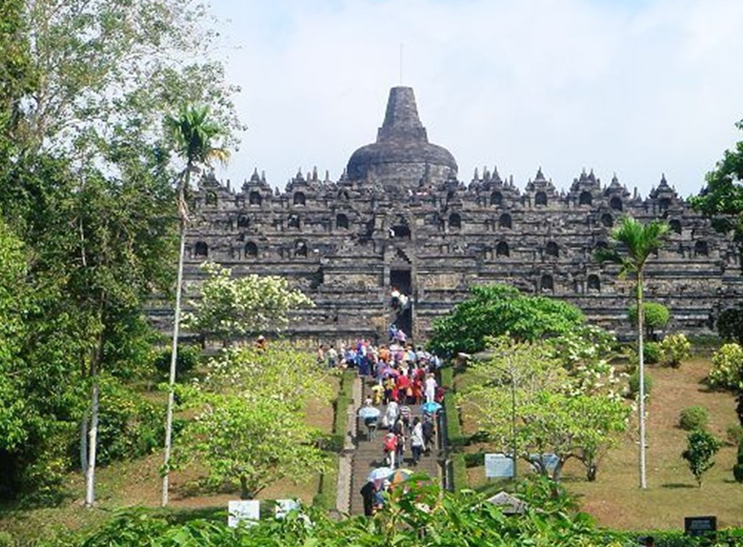婆羅浮屠佛塔歷盡滄桑和劫難。首先是伊斯蘭教傳入爪哇后,伊斯蘭教王國取代了佛教王國,夏連特拉王國遂衰亡,政治文化中心從此轉移到東爪哇。佛塔于是處于無人管理和問津狀態,逐漸衰落下去。其次是自然災害的影響。附近的墨拉比火山幾次爆發,將佛塔掩埋于火山灰、巖漿和野草莽林之中。藻類和菌類植物的迅速繁殖以及風吹雨打,嚴重侵蝕了佛塔。第三是人為的破壞。19世紀末,當地州長曾將佛塔內的一些藝術珍品作為禮物贈送給來訪的鄰國國王,荷蘭殖民者曾將一批寶物盜走。直至20世紀初,經過多次修復和挖掘清理,才使這一沉睡了900多年的藝術瑰寶重見天日,不過仍不盡如人意。1975年至1982年期間,再次進行一次大規模的修復工程。當時印尼政府呼吁聯合國協助挽救這一歷史性建筑,于是由聯合國科教文組織和印尼政府共同主持,耗資1550萬美元,將120多萬塊石頭一一剝下,剔除腐爛植物,再噴灑先進的除草劑,然后再重新裝上。工程之浩大可想而知。經過此次修繕,婆羅浮屠佛塔終于重放異彩。此后每年吸引50多萬游客前來參觀。關于佛塔有不少美麗的傳說。一說如果你能將手從孔洞中伸進去摸到佛像的手掌,那你將福星高照,隆運亨通;又傳說那些石雕怪獸和佛像可以避邪,于是引來不少游客頂禮膜拜,祈求平安和幸福。普蘭班南神廟也是以火山巖建造 .普蘭班南神廟中有一座露天劇場,每逢月圓前后的幾天,都要上演舞劇 《羅摩衍那》。