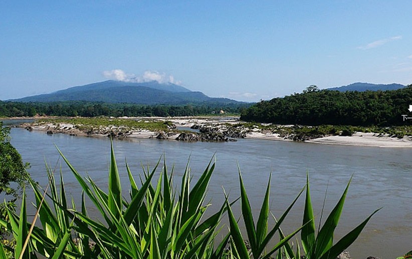 敏宋北距密支那43公里,又叫“三江口”,是恩梅開江和邁立開江的匯合處。敏宋是伊江的神來之筆,是克欽邦的精典景點。站在碩大的白體金塔前的草亭內,江風習習,俯瞰壯麗的三江口,頓覺胸襟開闊,思緒萬千。東邊那條叫恩梅開江,西邊這條就是邁立開江,兩江之間礁峭石奇,江水奔涌,在巨大的魚嘴石處交匯,合二為一,浩蕩南行,氣勢如虹。恩梅開江發源于西藏察隅縣境內,藏語叫“美爾東曲”;南下入云南怒江州貢山縣境后稱獨龍江;進入克欽邦后更名為恩梅開江。邁立開江源自中緬邊境的大雪山南麓,其東邊是江心坡,西邊是枯門嶺。這兩條江的性格一陰一陽,一剛一柔,陰陽結合后,便成了緬甸的“天惠