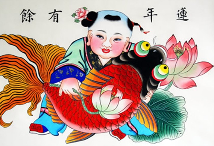 楊柳青年畫(huà)題材的一大種類便是娃娃。這些娃娃體態(tài)豐腴、活潑可愛(ài)。他們或手持蓮花;或懷抱鯉魚(yú),都象征吉祥美好,非常惹人喜愛(ài)。
