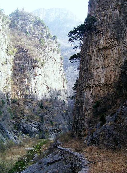 古羊腸坂在豫西北與晉東南接壤的南太行山中,東經(jīng)112°54′,北緯35°10′。南口懷州(今沁陽(yáng)市),北口潞州(今山西晉城)。從沁陽(yáng)西萬(wàn)、山王莊呈人字形入山,到常平匯交呈之字形北上,古稱“羊腸坂八百盤(pán)”。羊腸坂是古代太行五陘之一的太行陘,又名太行道。它盤(pán)旋在海拔200至940米之間,長(zhǎng)45公里。峰巒疊嶂,溝谷縱橫,懸峭屏連。在古代,這條坂道是古柏參天,虎豹攔路,陰森恐懼。