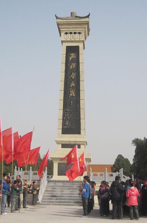 長治市武鄉縣城東45公里處監漳鄉的長樂村,是抗戰時期我八路軍主力粉碎日寇對太行山根據地實行“九路圍攻”的主要戰場。1938年春天日軍調集重兵30OOO余人,由博愛、邯鄲、邢臺、石家莊、陽泉、榆次、太谷、沁縣、長治等地分九路對我晉東南地區革命根據地進行圍攻,妄圖在遼縣、武鄉、榆社一帶消滅我八路軍主力,摧毀我初創的太行抗日根據地。4月16日,日軍北犯榆社撲空后,版權所有山東聊城聊之旅國際旅行社有限公司,轉載必究!毀棄武鄉,向襄垣竄去,我八路軍129師主力與115師一部遵照朱德總司令和彭德懷副總司令的命令,在劉伯承師長、鄧小平政委和徐向前師長的指揮下,以四個團的兵力追殲敵軍,我軍以急襲手段將日軍壓縮在馬家莊、里莊灘至長樂村一帶的河谷地區,截為數段,各個擊破,殲敵2200余人,取得了粉碎日軍九路圍攻的決定性勝利。為紀念這一輝煌勝利,當地政府在長樂村建起了雄偉的長樂村戰斗紀念碑。 每逢節假日,人們常常到這里瞻仰紀念碑,緬懷革命先烈。