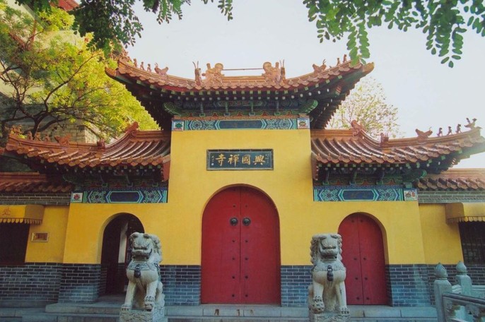 千佛山,東西橫列,奇?zhèn)ド钚悖瑥倪h處望去,猶如一架巨大錦屏。山腰處建有"興國禪寺"、"歷山院"。除此之外,還散落著"唐槐亭"、"齊煙九點"及"云徑禪關"坊等。