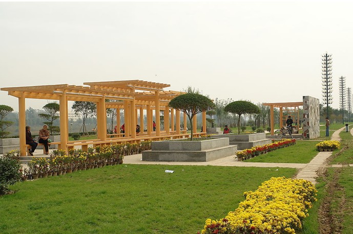 濱河路景觀綠化工程在充分保護和利用原有林草植被的基礎上,大量引種優良樹種,銀杏、金絲垂柳、金枝國槐、雪松、欒樹、紫薇、櫻花、榆葉梅、珍珠梅等樹種紛紛落戶沂河兩岸,讓濱河景區成為“一河青水、兩岸綠色、三季花香,四季常青”的植物王國。濱河路的綠化景觀,就像一條綠色的飄帶,沿沂河河岸穿城而過,無論是游人如織的白天還是華燈綻放的夜晚,都以她迷人的風采吸引著人們的腳步和目光。
