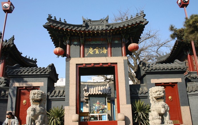 海云庵是四方民俗旅游區(qū)的重要景點,為青島著名的明代建筑,占地800平方米。一進院落,外以灰垣相圍,內(nèi)有大殿、東西配殿、東西廂房和鐘樓、鼓樓。庵內(nèi)一株高大的古銀杏枝繁葉茂,環(huán)境十分清靜。庵內(nèi)大殿供奉觀音大士,左右配殿分別供奉龍王、關(guān)公、比干、老君、魯班等。1923年重修時,增建鐘、鼓樓各一座,近年又在庵前辟建廣場,是青島市區(qū)唯一一座開展宗教活動的道教廟庵。海云庵自建成以來,香火一直旺盛,尤其每年正月十六廟會期間,四鄉(xiāng)八鄰趕廟進香,熱鬧非常。廟會上尤以鄉(xiāng)親們用山楂、紅棗、山藥、桔子制作的各式糖球為最多,遂逐漸形成了以糖球為特色的傳統(tǒng)廟會,人稱"海云庵糖球會"。