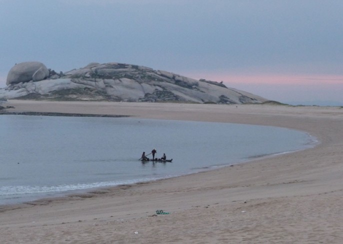 在平潭島西北看澳村西側500多米的海面,遠遠望去有一個圓盤狀的大礁石,托著一高一低的兩塊碑形海蝕柱。整個礁石象一艘大船兩塊巨石象兩面鼓起的雙帆,似乎正在乘風破浪前進。這是平潭最著名的自然景觀――石牌洋。又稱為“半洋石帆”和“雙帆石”。