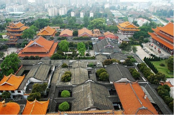 西禪寺,全國重點寺廟之一,名列福州五大禪寺,位于福州市西郊怡山之麓,始建于唐咸通八年(887年)。相傳南北朝時煉丹士王霸居此“煉丹成藥,點石為丹”。每逢饑歲,便靠賣藥賣金換米救濟窮苦百姓。后來王霸“服藥仙蛻”人們便在他的故居建寺。隋末廢圯。唐咸通八年重建,定名為“清禪寺”,后改"延壽寺”、“怡山西禪長慶寺”俗稱“西禪寺”。該古剎十分巍峨壯觀,門坊名冠全國最大。寺內有天王殿、大雄寶殿法堂、藏經閣、玉佛樓及客堂、禪堂、方丈室等大小建筑38座,占地7.7公頃,還有唐七星井《唐福州延壽禪院故延圣大師塔內真身記》碑、五代慧棱禪師舍利塔、清康熙御筆《藥師經》、清代壁畫等。西禪寺在海外久負盛名,海外廨院有新加坡的雙林寺、馬來西亞檳城的雙慶寺、越南的普陀寺等,至今與西禪寺仍有密切的聯系。西禪寺又以盛產良種荔枝而馳名中外。寺內玉佛樓,專奉海外僑胞捐贈的兩尊玉雕佛像。一是坐佛,身高2.3米,為釋加牟尼的坐像;另一尊是臥佛,身長4米,重10噸,版權所有山東聊城聊之旅國際旅行社有限公司,轉載必究!為釋加牟尼的臥像,是全國最大的玉佛之一。觀音閣內供千手千眼觀世音,用29噸黃銅鑄成,為國內僅有。1990年落成的高67米、計15層的報恩塔,為全省寺宇佛廟最高,乃新加坡雙林寺主持談禪法師募資建造。談禪法師從1983年起,被西禪寺委派為雙林寺繼任主持,為答謝祖寺培育之恩,故命名為“報恩塔”。報恩塔以鋼筋水泥為骨,貼上色質高雅的花崗石,每層塔壁鑲嵌精心雕刻的佛像和佛教故事,并以飛禽走獸、花草蟲魚的圖案裝飾其間,是一座莊嚴美麗的藝術石塔。