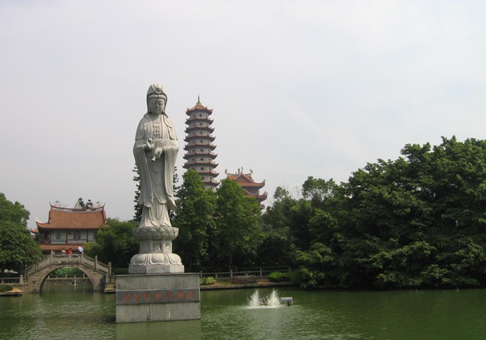 中華人民共和國成立后,西禪寺又屢加修復,煥然一新。1979年,“文化大革命”中關閉的西禪寺重新作為佛教活動場所開放,愛國僑僧談禪等捐款修復各殿堂,并創建了玉佛樓。樓中供奉兩尊緬甸玉佛,一尊為臥佛,長3.7米,重10噸;另一尊坐佛,高2.95米,重8噸。近年來,海外僑僧又捐資興建了報恩塔,塔高67米,共13層,十分壯觀。寺內名勝古跡甚多,有傳說梁代王霸升天之沖虛觀及白龜吐泉遺址,有唐開山祖懶安禪師《塔內真身記》石碑、唐慧稜禪師塔、唐七星井、弘一大師放生池碑,還有雪庵禪師朱底金字百壽屏、康熙御書《藥師經》、寺僧刺血撰寫的《法華經》、《楞嚴經》等。西禪寺歷史上擁有許多下院,與臺灣及東南亞各國佛教有很深的因緣。在福州市的下院有開化寺、護國寺、觀音閣、萬壽頭陀寺。在新加坡的下院有雙林寺、馬來西亞有雙慶寺,版權所有山東聊城聊之旅國際旅行社有限公司,轉載必究!越南南普陀寺(舍利院)等。各下院都由西禪寺派僧常住管理。在今天大雄寶殿的石柱上,保存著不少清代臺灣同胞敬題的對聯。西禪寺對外開放以來,臺灣及東南亞各國僧眾及佛教信徒紛紛來寺朝拜進香,并捐資修廟,傾注熱愛中華、熱愛祖寺之心。1994年,新加坡蓮山雙林寺僑僧談禪法師募捐130萬元港幣建造的千手觀音銅像及仿古建筑觀音閣,在著名古剎福州怡山西禪寺完成。觀音大士結跏跌坐于蓮臺之上,慈悲垂視,呈十一道、千臂、千目之莊嚴妙相。造像總高11.3米,膝間橫寬4.5米,以40噸青銅鑄就。