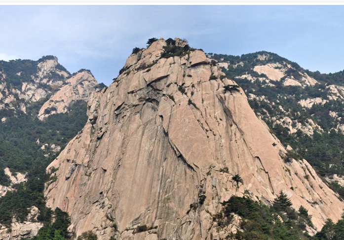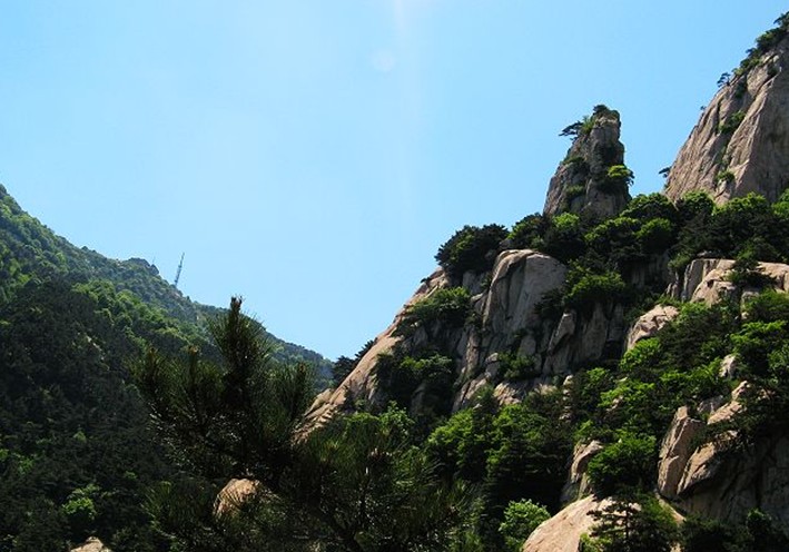 在泰山的東北麓,有一條蜿蜒曲折的登山路直達岱頂。沿著這條路,可見天燭峰景區的景致。這里,奇石能言,清泉有聲,大小天燭朝天立,懸崖巨壁夾谷行。將軍山如大將軍披甲,羅漢峰似眾羅漢疊立,大自然的神奇造化,令人嘆為觀止。這里,藍天高遠,大山空曠,松濤陣陣,白云悠悠,是尋古探幽的好去處,只有到這兒來,才能領略到山林野趣的真諦。