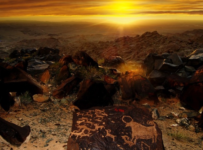 在阿拉善高原上有一座形狀奇特的山脈,山上黑石嶙峋,巖脈蜿蜒,周圍巨大的巖石皆成圓形,酷似隕石分布,一條崎嶇小路不見盡頭,這便是曼德拉山。蒙語曼德拉是漢語“升起來”的意思。專家考證,早在新石器仰韶文化時期,阿拉善大地上便有了人類活動的足跡。