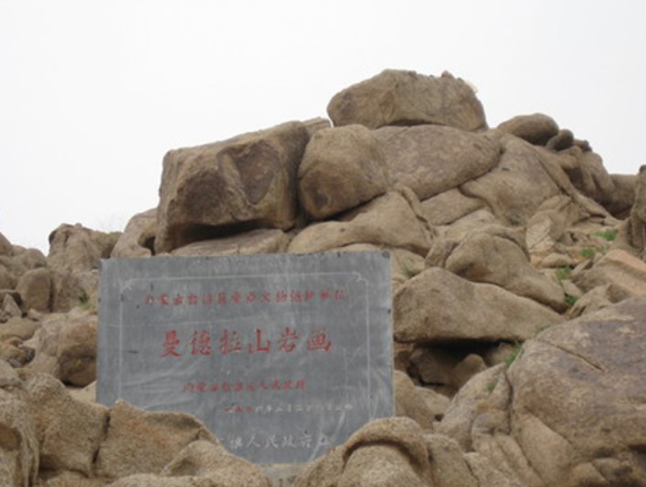 曼德拉山巖畫位于阿拉善右旗孟根布拉格蘇木克德呼都格嘎查境內。山巒四周為草原牧場,遠遠望去頗有威嚴壯觀之勢,尤其是山中溝邊的黑色巖石群,起伏蜿蜒,上邊刻有很多世間罕見的巖畫,與山下的茫茫草原組成了一幅奇偉瑰麗的自然畫卷。 曼德拉山巖畫極為密集,分布在東西3公里、南北5公里的山地上。據不完全統計,現已發現巖畫6千余幅,這樣數量眾多的巖畫在其它地區極為少見。