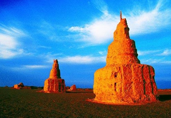 居延文化遺址:漢代時,居延、肩水兩都尉均為張掖郡所轄,因此將其所建邊塞城、障、烽、燧、塞墻等遺址現統稱居延遺址。