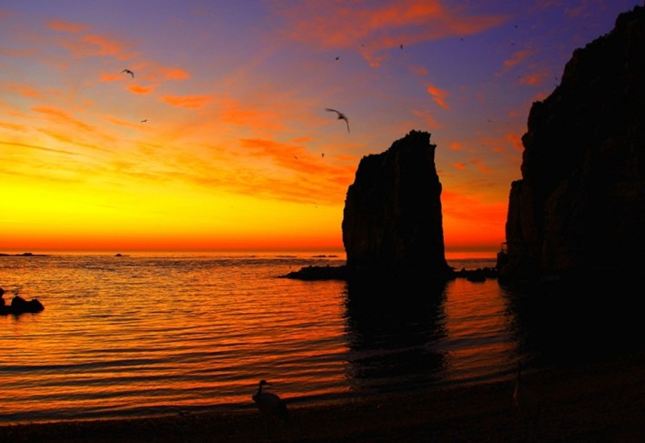 海驢島被千萬(wàn)年來(lái)不知疲倦的海浪沖刷雕蝕得危峰兀立、怪石嶙峋,與起落的海潮、連天的波濤、精靈似的鷗鷺共同構(gòu)成風(fēng)景獨(dú)特的海島風(fēng)光,令人遐思不斷、流連忘返!