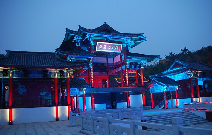 《神游華夏》大型演藝,是由山東威海華夏集團(tuán)斥資3.2億元,邀請(qǐng)著名導(dǎo)演趙安聯(lián)手打造的世界首個(gè)360度旋轉(zhuǎn)行走式大型山水實(shí)景演藝劇場(chǎng)。