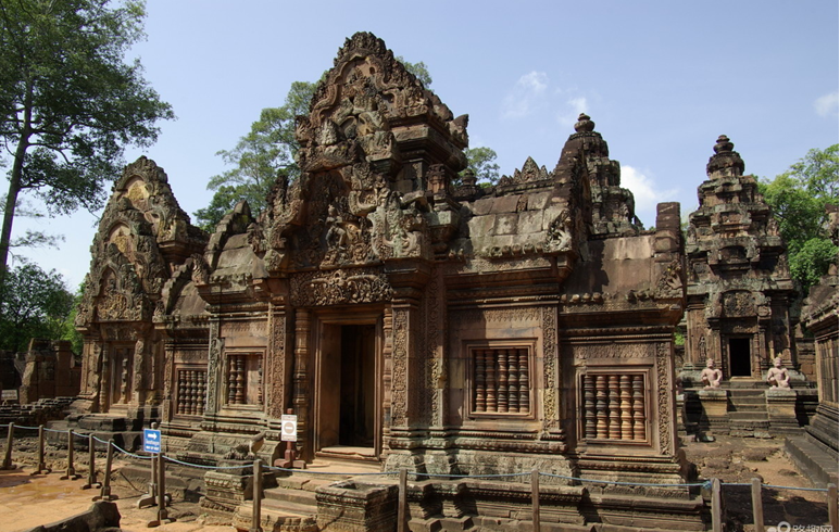吳哥寺是柬埔寨的印度教毗濕奴神廟,又稱吳哥窟,建于12世紀(jì)初。后為高棉國(guó)王蘇利耶跋摩二世(1113~1150年在位)的陵墓。15世紀(jì)上半葉,隨吳哥都城廢棄而荒蕪,19世紀(jì)中葉重新修整,成為世界著名古跡。版權(quán)所有山東聊城聊之旅國(guó)際旅行社有限公司,轉(zhuǎn)載必究!該寺全部用砂巖重疊砌成,占地約2平方公里,四周有城壕環(huán)繞。神廟圍有依次增高的3層回廊,各回廊的四角配有高塔,以中心塔(高出地面65米)為頂點(diǎn),形成高度依層次遞減的高塔群,呈現(xiàn)出均衡美。吳哥寺的裝飾浮雕豐富多彩。浮雕刻于回廊的內(nèi)壁及廊柱、石墻、基石、窗楣、欄桿之上,題材取自印度教神話和高棉王朝的歷史。
