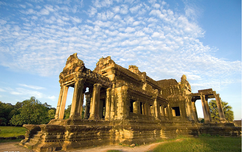 在12世紀(jì)時(shí),吳哥建筑達(dá)到了藝術(shù)上的高潮。當(dāng)時(shí)建造的吳哥廟,所有的墻壁全都刻有精美的浮雕,每個(gè)平臺(tái)的周圍都有面向四方的長(zhǎng)廊,連接著神殿、角塔和階梯,即使長(zhǎng)廊的墻上也全都刻有描述古代印度神話故事的浮雕。吳哥廟不僅本身規(guī)模宏大無(wú)比,廟宇的外面還有一條將近10米寬的堤路。直通廟宇的大門,堤路的兩邊也都豎立著巨大威嚴(yán)的那伽蛇神像。—般說(shuō)來(lái),世界各國(guó)所有的廟宇都是坐西朝東,而唯獨(dú)吳哥廟大門朝西,這使后來(lái)研究古代高棉的考古學(xué)家百思不解。此后,吳哥王朝的歷代國(guó)王的建城工作就—代又一代地傳了下來(lái)。