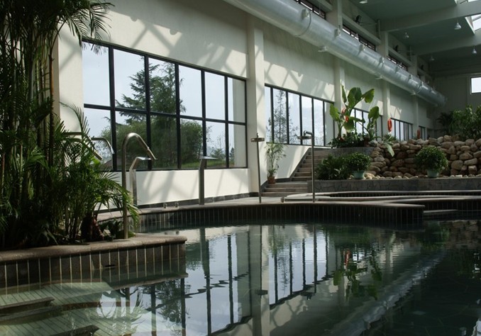 溫泉區包括室外森林養生溫泉和室內溫泉館,依山勢而建,在保持了原有山林風貌的基礎上點綴了66個溫泉泡池,泡溫泉的同時您便走進了一座天然園林。溫泉水質屬于氯化鈉型熱礦泉,富含偏硅酸、碘、鍶等多種有益人體健康的礦物質元素,具有調節植物神經、改善心血管功能、提高機體免疫力等功效。