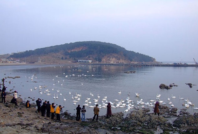 煙墩角位于山東省榮成市位于山東半島最東端,千里海岸灣岬相連,魚蝦貝藻等海洋資源豐富,屬暖溫帶季風(fēng)型濕潤所候區(qū),是世界最大的的大天鵝越冬樂園,已建起了榮成天鵝國家級自然保護(hù)區(qū)。每年11月到次年4月,都有上萬只來自西伯利亞的大天鵝在榮成沿海眾多的湖泊、海灣越冬。這些海灣、湖泊就是人們常說的榮成天鵝湖了。煙墩角天鵝湖就是其中之一。