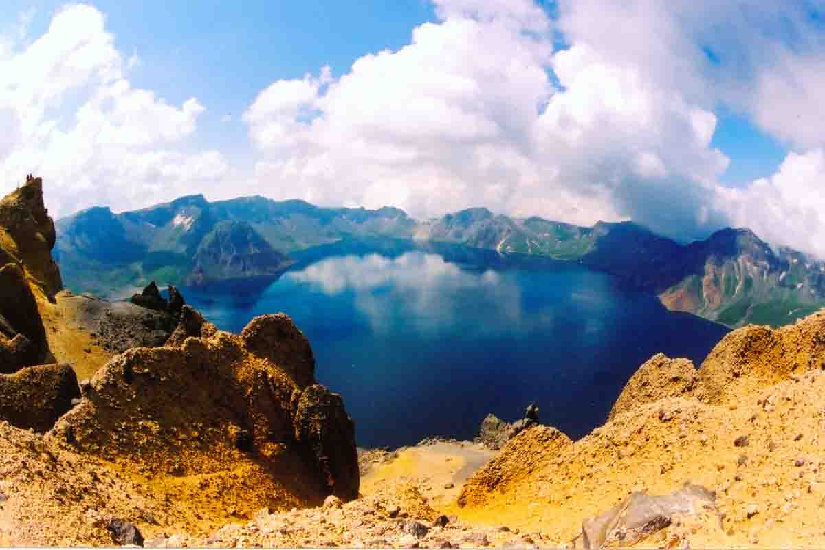 長白山天池位于長白山主峰火山錐體的頂部,是一座火山口,經(jīng)過漫長的年代積水成湖。長白山天池海拔2189.1米,比新疆維吾爾自治區(qū)的天山天池高209米。天池略呈橢圓型,南北長4.4公里,東西寬3.37公里。集水面積21.4平方公里,水面面積9.82平方公里,水面周長13.1公里,平均水深204米,最深處達373米。總蓄水量20.4億立方米。天池水溫為0.7°C——11°C,年平均氣溫7.3°C。天池像一塊瑰麗的碧玉鑲嵌在雄偉的長白山群峰之中,它是中國最高最大的高山湖泊。是東北三條大江——松花江、鴨綠江、圖們江的發(fā)源地。柔美的天池白云繚繞,五色斑斕波光嵐影,群峰環(huán)抱,蔚為壯觀。天池上空氣候多變,多云、多霧、多雨、多雪,云、霧、雨、雪把天池不僅裝點得美麗動人,而且更加虛幻神秘,迷迷茫茫。尤其盛夏季節(jié),風雨不定,變化頻繁,有時一日之內(nèi),甚至一小時之內(nèi)就可能發(fā)生幾次變化,剛剛還是驕陽直射、焦灼烤人,忽然間狂風大作、黑云滾滾、電閃雷鳴,大雨傾盆,山峰、湖面傾刻間淹沒在風雨之中了……一會又風和日麗,山峰、湖面又重新展露出來。雨后天池景色格外迷人,池邊群峰競秀,山野如洗;池上霞光萬道,長虹當空;池中奇峰倒映,波光粼粼。天池上空經(jīng)常云霧繚繞,置身其中使人頓覺騰云駕霧一般,白云在腳下飄逸。給人一種神秘莫測、飄飄欲仙的美感。有時還會出現(xiàn)池東日出池西雨,山上大雨,山下晴的奇異景觀。