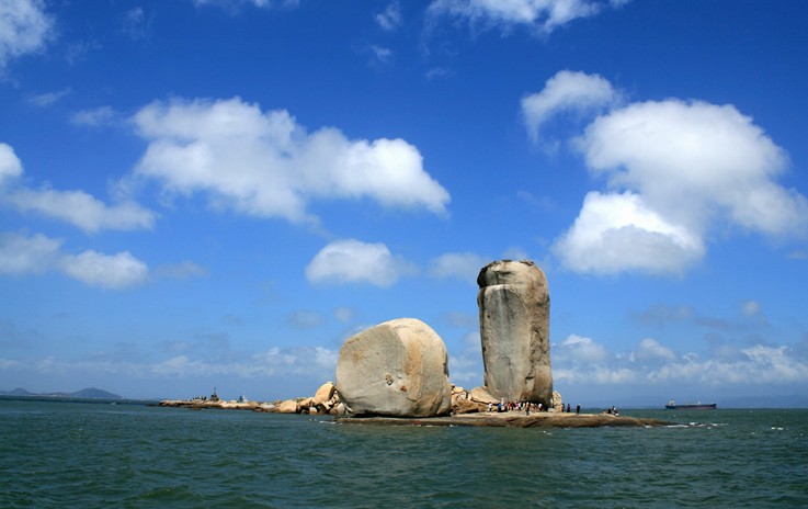 從看澳村岸邊坐渡船,十幾分鐘就到達(dá)礁石上,礁石底部是一組平坦完整的巖石。兩個(gè)石柱均由粗粒灰白色的花崗巖組成 東側(cè)的一個(gè)高達(dá)33米,胸寬9米,厚8米;西側(cè)的一個(gè)高17米,胸寬15米,厚8米。版權(quán)所有山東聊城聊之旅國際旅行社有限公司,轉(zhuǎn)載必究!兩個(gè)石柱的底部都是近似四方形體,直立在礁石上。據(jù)地質(zhì)學(xué)家考證是世界上最大的花崗巖球狀風(fēng)化海蝕柱。由于它的奇特壯觀,對(duì)游人有著強(qiáng)烈的震撼力和吸引力。建設(shè)部與中科院的專家稱之為:“壟斷性的世界級(jí)旅游資源。”明代旅行家陳第曾譽(yù)之為“天下奇觀”, 清朝女詩人林淑貞詩贊:“共說前朝帝子舟,雙帆偶趁此句留;料因濁世風(fēng)波險(xiǎn),一泊于今纜不收.