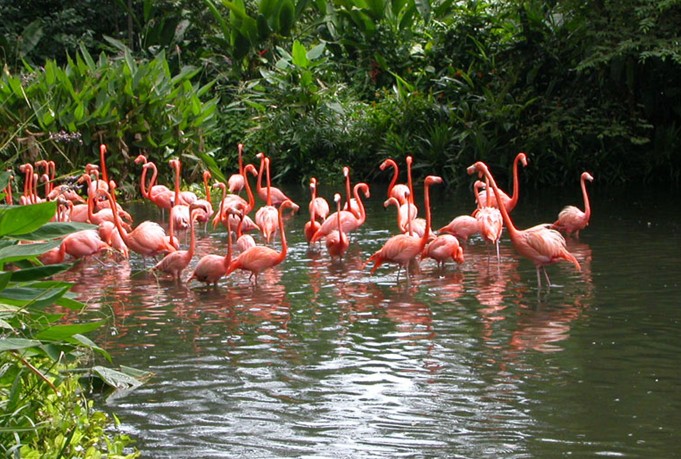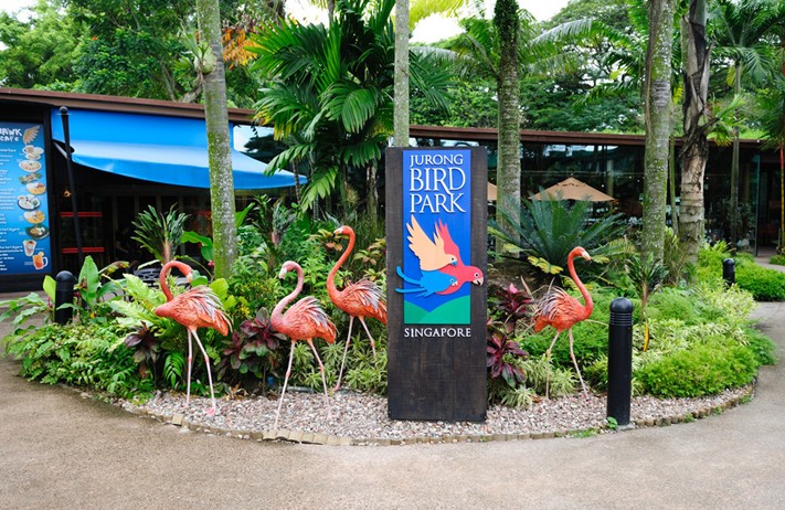 新加坡的裕廊飛禽園內建有95個鳥舍、10個活動場所和6個池塘,養有380多種飛鳥,約4600只,其中有29種受威脅鳥類。園內廣泛搜羅了東南亞及世界各地的鳥類,有來自西班牙的紅鶴、來自北京的知更鳥、來自幾內亞的食火雞、來自巴西的三趾鴕鳥、有羽毛絢麗的熱帶鳥和來自冰天雪地的南極企鵝等,是個“花木四時茂,人來鳥不驚”的“鳥類王國”。園中修建有四通八達的柏油小徑,不愿步行者也可選游覽車。