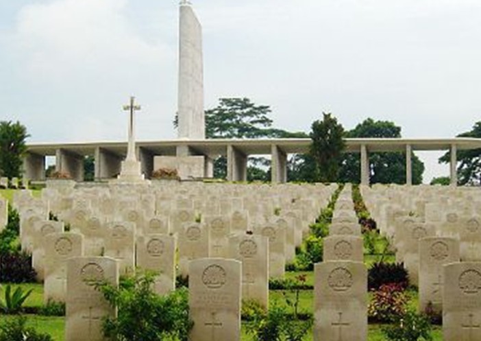 克蘭芝烈士紀念碑是為紀念二戰時期為了保衛新加坡而戰死的4000余名英軍戰士而修建的,慰靈塔是公墓的象征。公墓內除了二戰中陣亡的將士之外,還有約24000名英國人長眠于此。墓地草坪格外美麗,里面排列著白色十字架。湛藍的天空、耀眼的太陽以及藍天白云下手捧鮮花默默而立的人們,使人戚然神傷。