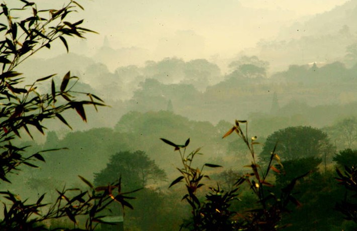 海陽云頂自然風景旅游區位于海陽市盤石店鎮大莊村西側,招虎山北麓。這里群山環抱,古樹參天,空氣清新,泉多水清,翠竹叢生,周圍4800畝山嵐至今保持著良好的生態環境,近千種動植物生機勃勃。尤其令人驚嘆的是這里竟然生長著500余畝郁郁蔥蔥的竹子。據林業專家稱,這片江北最大的竹林,起源于何時已無從考究。但在北緯37º地區能有如此規模的竹林,舉世罕見。