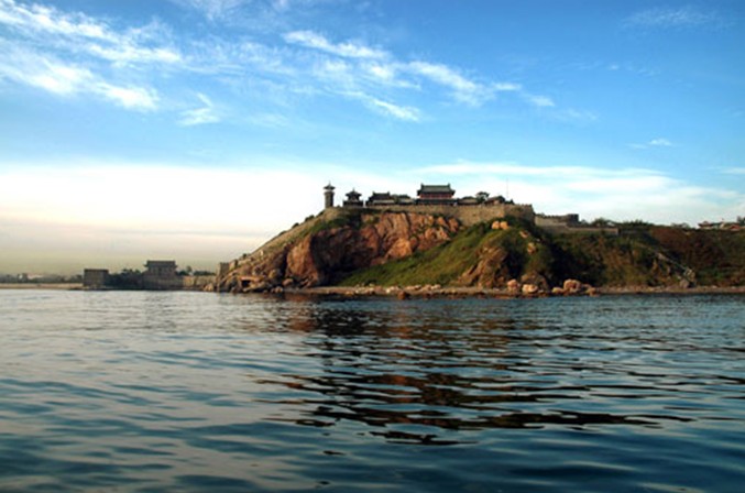 水城,港灣俗稱小海,居城中,呈長袋形,是水城的主體,為操練水師與泊船之所(圖1),寬度平均約100米,南北長655米。水深隨潮汐而變,最低時約3米多。平浪臺,迎水門而立,外設防波堤,長約80米。小海沿岸以塊石砌筑碼頭,寬 5~10米,供船只停靠。航海燈樓為清同治七年 (1868)增筑,1958 年重修,磚石結構,六角,尖頂,高11.6米,內設扶梯可供攀登,上設燈亭以為導航。版權所有山東聊城聊之旅國際旅行社有限公司,轉載必究!燈樓高踞丹崖山上,臨崖修筑,拔壁參天,今仍可實用。