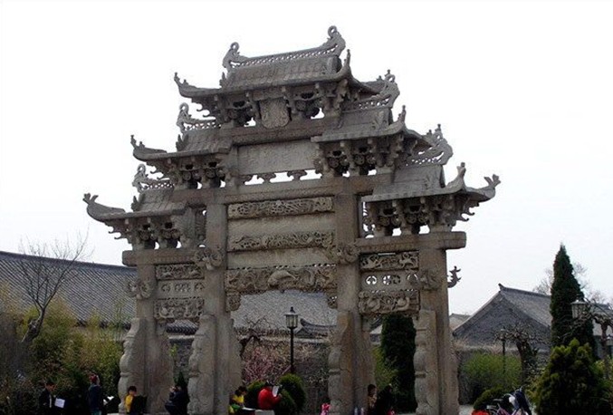 位于蓬萊城牌坊里街東西兩端,東為“母子節孝”坊,西為“父子總督”坊,明嘉靖四十四年,朝廷為旌表戚氏家族而建。兩坊間距140米,均系四柱三間式出檐多脊花崗巖石雕坊,高9.5米,寬8.3米,進深2.7米,正間上下三坊,側間各有兩坊,分別雕飾花木鳥獸等圖案,兩坊中間有多行字。兩座牌坊巍峨挺拔,氣勢雄偉,構圖豐滿,雕鏤精細,具有很高的歷史價值和藝術價值,是國內少見的明代大型石雕珍品。