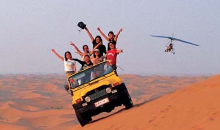 特別是沙海沖浪,是游人進入月亮湖景區所必須嘗試和接受挑戰的項目,也是驚險和極富刺激的項目。在沙海沖浪中,司機以其嫻熟的車技將越野車從一個沙丘頂端沖向另一個沙丘的頂端,在頂端——深谷——頂端那瀚海沙浪的大起大落中讓游人感受疾速升降運動所帶來的那種無法自控的驚險刺激。在飛馳的車里,生命會徹底得到放松,人從心靈深處會感到擁抱大自然的那種快樂和欣慰。這里已成為現代都市人體驗原生態大自然,感悟生命,洗心靜思的心靈休閑勝地。
