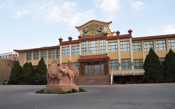 敦煌市博物館,位于敦煌市陽關東路,是以歷史文物為主的綜合地志性館,現館址建于1984年,主樓三層,建筑面積2400平方米。 樓前大院內有象征絲綢 古道上牽駝跋涉的大型雕塑一組。館藏文物有石、陶、瓷、木器、寫經、漢簡、絲綢、珠玉、花磚、書畫、拓片、古幣、鐵器、銅器等14類,4000多件。